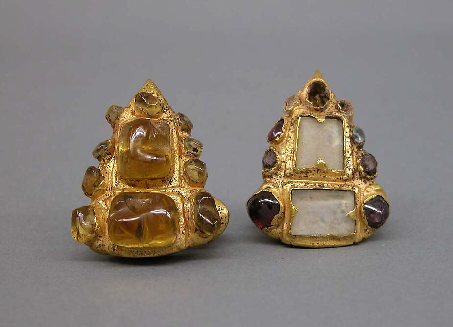 - Title: Pair of Ear Ornaments Inlaid with Stones