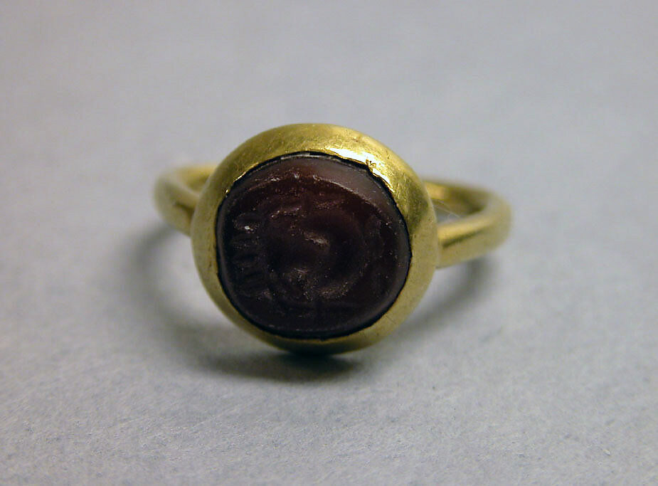- Title: Ring with Inset Circular Red Stone