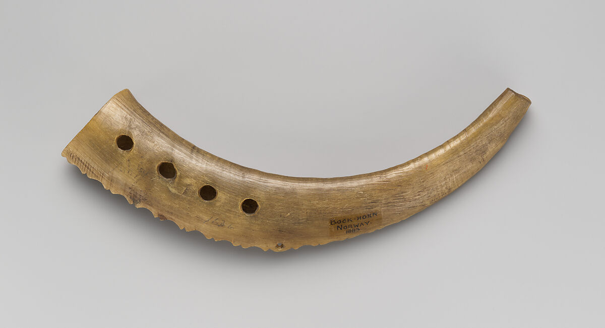 A folk instrument of goat's horn is used in Scandinavia found under the name bukkehorn or prillarhorn. Its fingerholes facilitate different pitches and melodic possibilities, it may be the archetype from which the cornettos were derived.