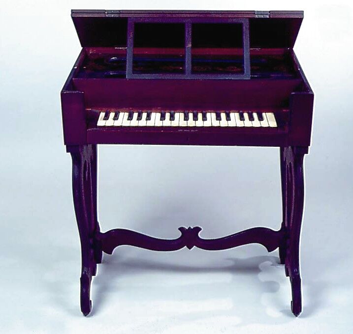 The glassichord is an 18th century musical invention featuring glass bars struck with hammers that are activated by a keyboard. The instrument was invented in France and purportedly named by Benjamin Franklin who had an example he brought back to the United States. This example has casework similar to New York made pianos of the nineteenth century.