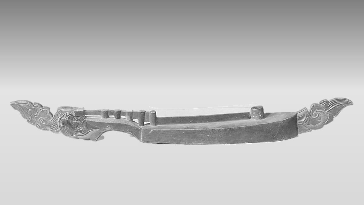 This plucked lute is carved from the back to resemble a phinisi, a traditional ship. It is used to accompany singing and a song poem called Dadendate. The instrument is similar to the Batak hasapi and word kacapi may refer to a zither of West Java.