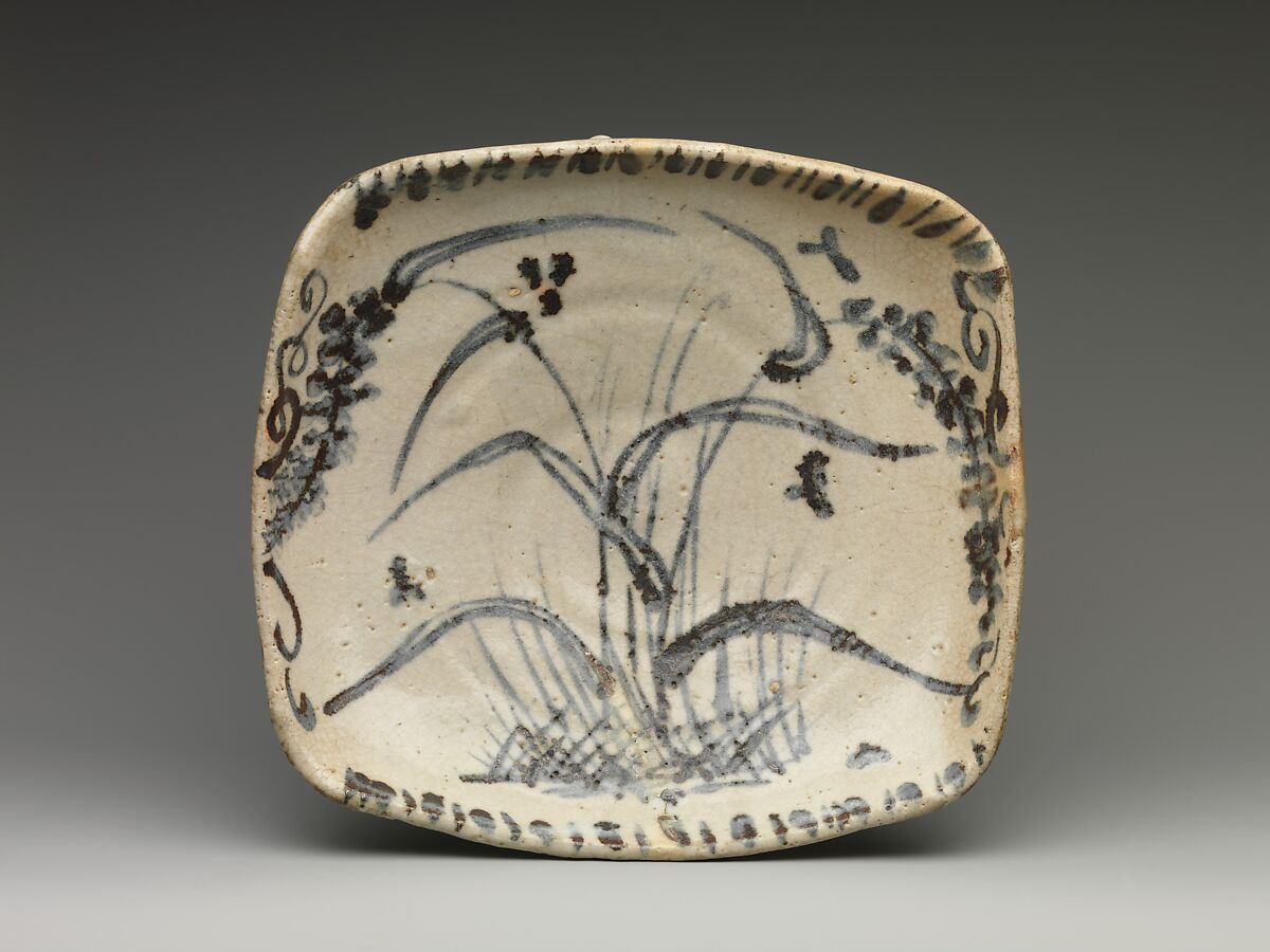- Medium: Stoneware with underglaze iron decoration (Mino ware, Shino style)