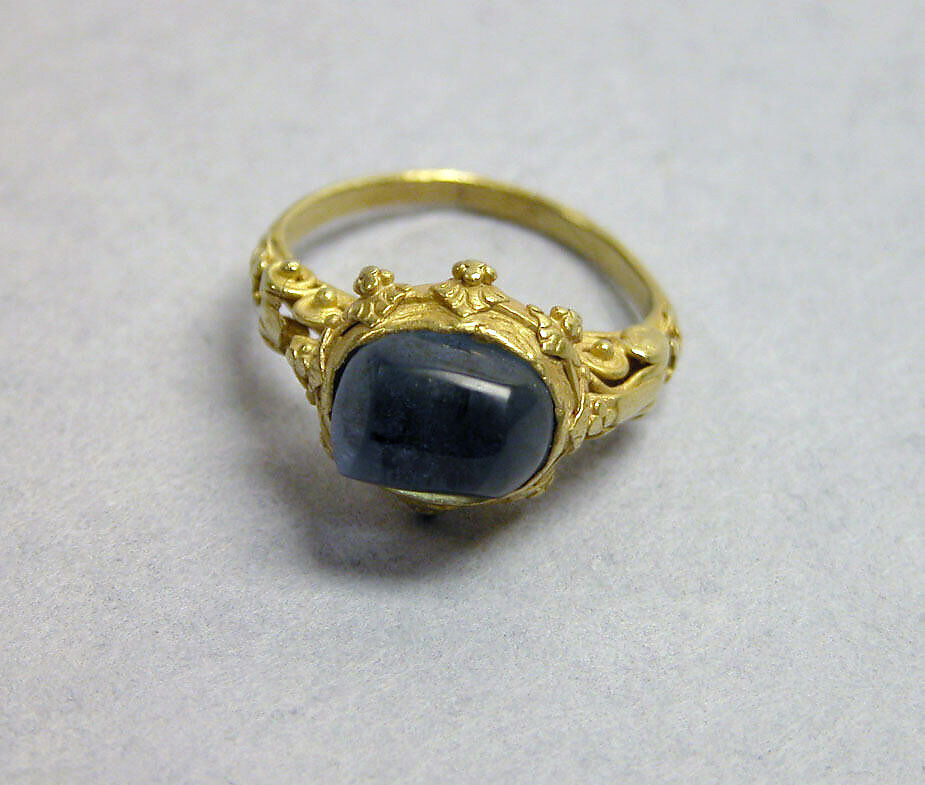 - Medium: Gold with blue stone