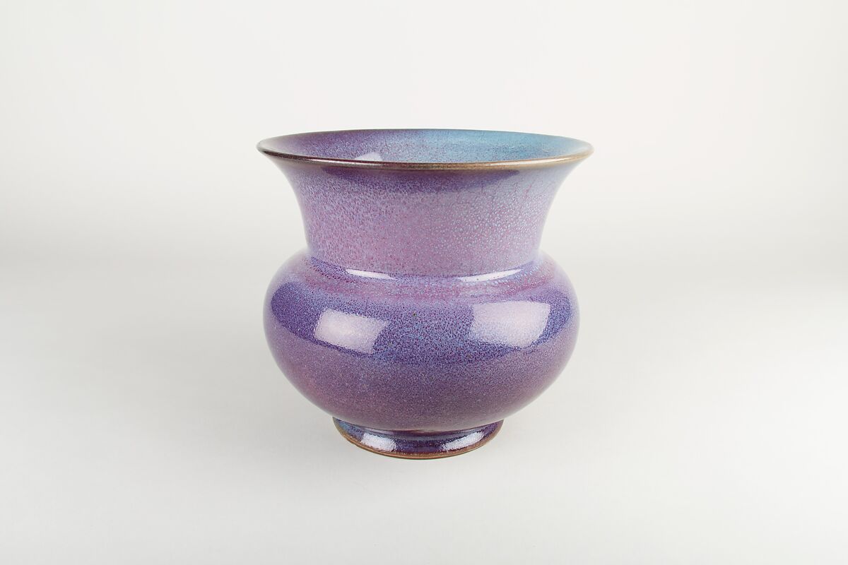 - Medium: Stoneware with variegated glaze ("numbered Jun" ware)