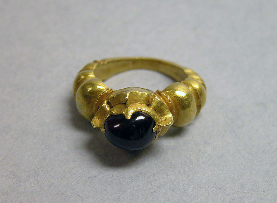 - Title:Ring with Reddish-purple Stone and Ribbed Hoop