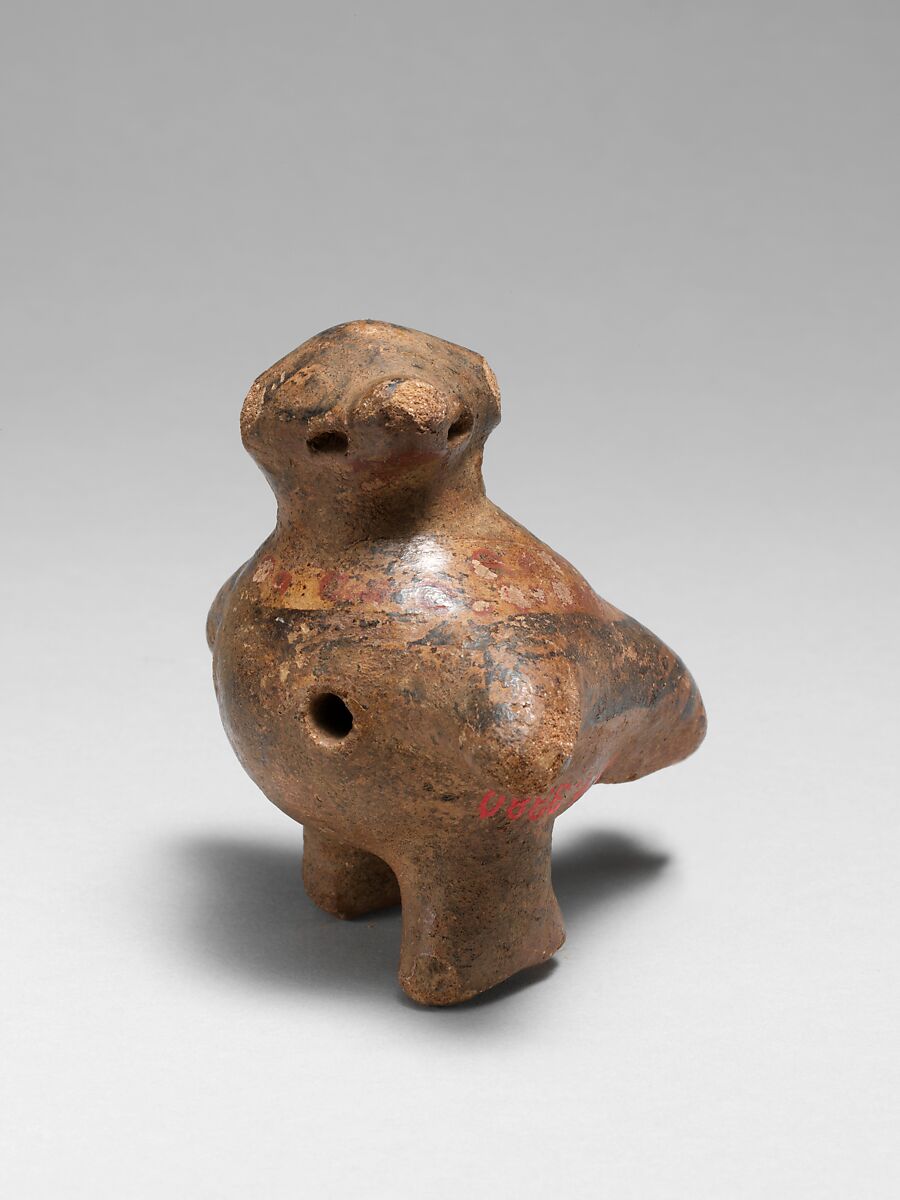 Although numerous types of instruments survive from pre-conquest South and Central America, little is known of how they were used. Whistles were often made in animal or human form and probably had ceremonial functions or served as playthings. Smaller whistles in animal shapes, perhaps worn suspended from the neck, frequently have fingerholes that allow variation of pitch. Sometimes, the sound it creates mimics the creature represented.