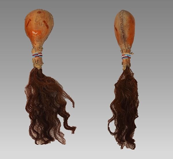 - Medium: horse hair, buckskin, beads, hide, pebbles or pellets, paint