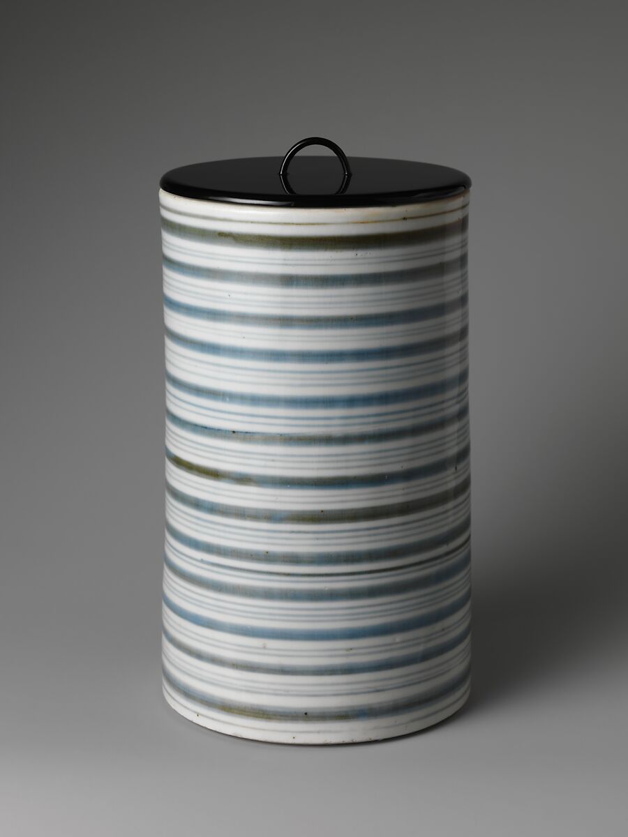 - Title: Tall Freshwater Jar (Hoso-mizusashi) with Striped Design