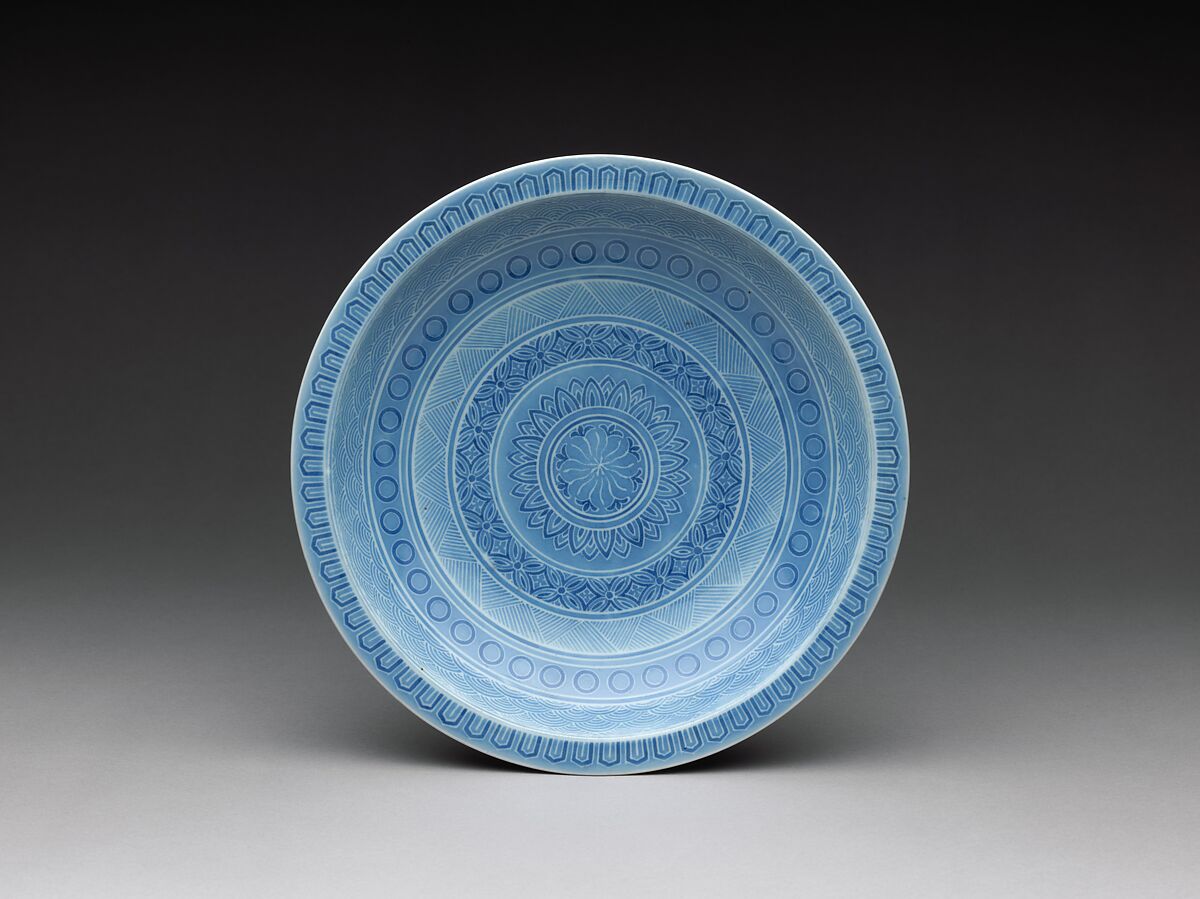 This dish is an excellent example of the sophisticated technique of early Nabeshima potters. The unglazed ware was painted with sumi (ink), decorated with underglaze cobalt blue and then covered in a light cobalt-blue glaze followed by a clear glaze. When fired, the sumi evaporates along with the cobalt-blue glaze, leaving the underlying white porcelain visible in a process known as sumihajiki.