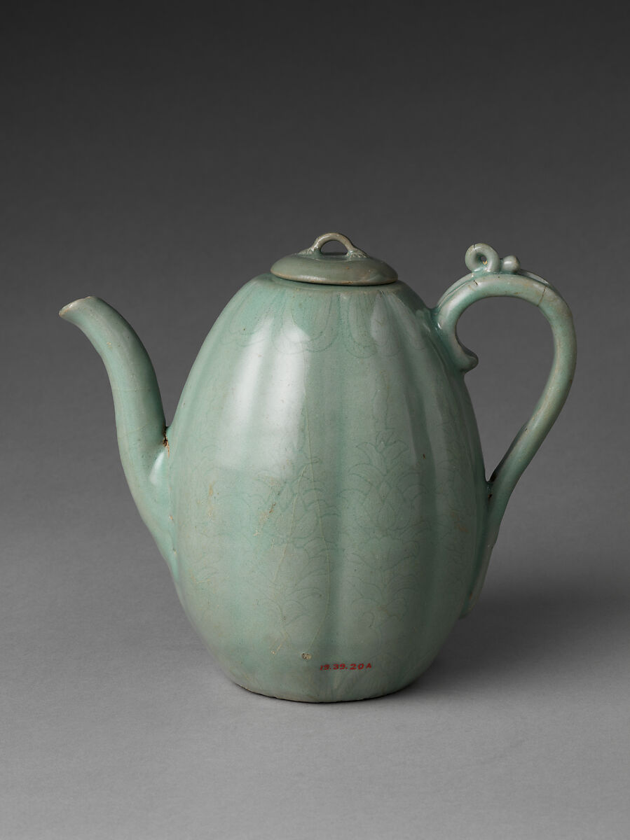 Ceramics with green glazes were the only high-fired wares produced in Korea during the Goryeo dynasty. The tradition of such high-fired green-glazed wares was first introduced from China around the tenth century. However, by the middle of the twelfth, Korean potters had developed distinctive traditions with shapes and designs that reflect native taste. These Korean wares were extolled in contemporaneous Chinese writings as having the radiance of jade and the clarity of water.