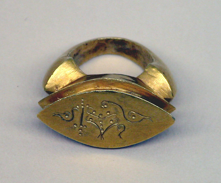 - Title:Stirrup-shaped Ring with Oblong Bezel and "Shankha"