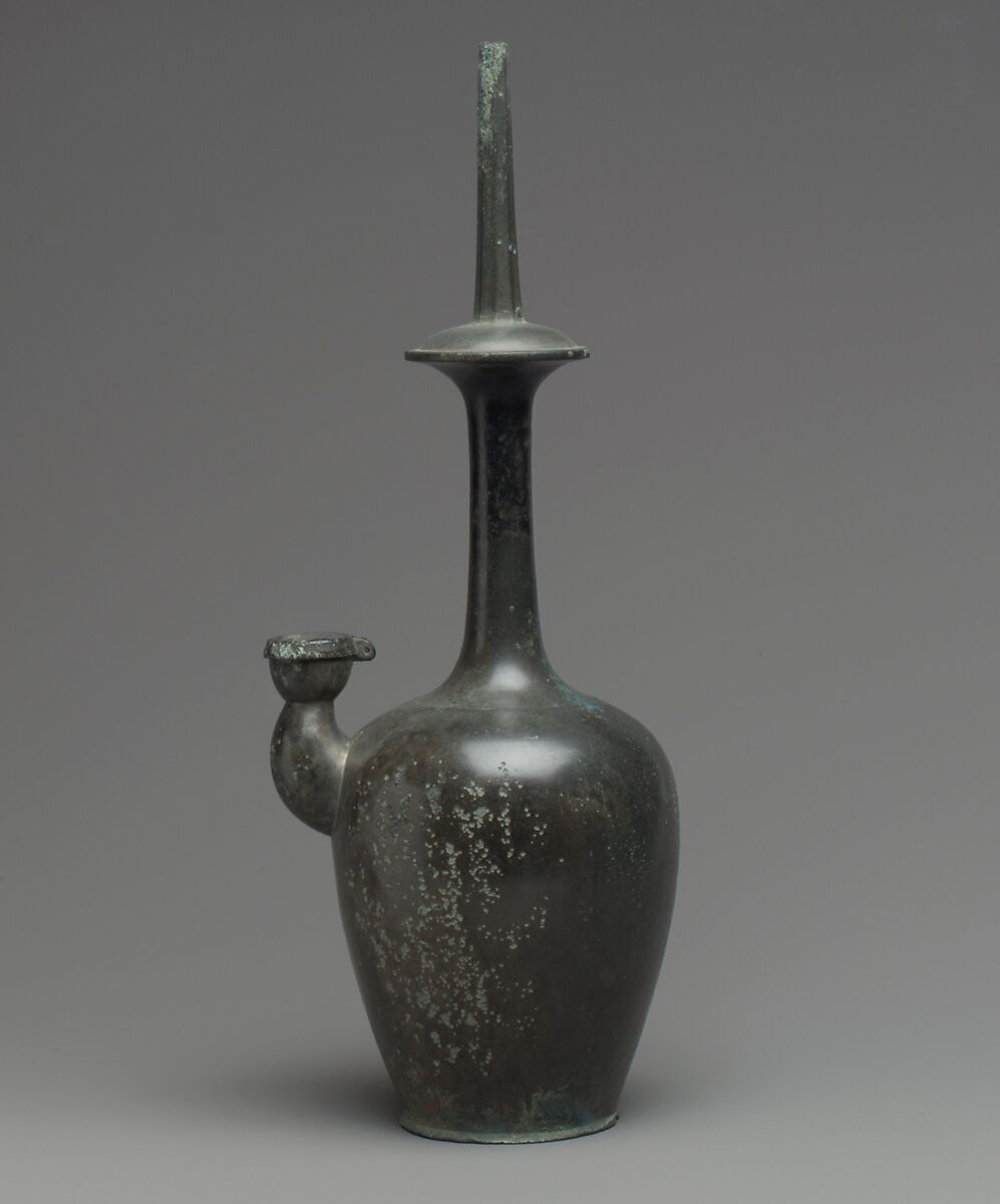 Distinctively shaped containers such as this example were traditionally used in Asia as water sprinklers for Buddhist purification rituals.