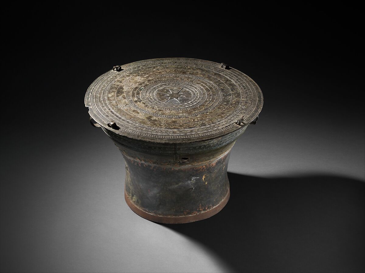 Bronze drums, which have been unearthed throughout Southeast Asia and parts of southern China, represent one of the oldest continuous musical traditions. These beautifully decorated instruments are made in sections by the lost-wax casting method and topped by a bronze tympanum instead of a skin head. The most ancient examples date from the Bronze Age Đông Sõn culture (late fourth century B.C.E.) in present day northern Vietnam; they were used in and buried during funerary rituals. It is believed that some were tuned and used in ensembles. Even today the drums, known by various names, play an important role in the cultural life of the Karen people in Burma and Thailand and fo other groups in Guangzi and Yunnan, China.