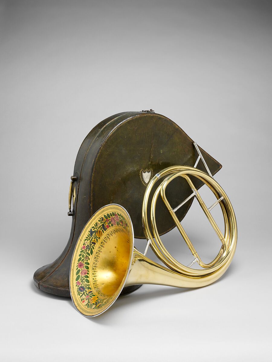 Cors solo, a French invention, are horns built specifically for the use of soloists. They not only are extremely carefully crafted but also have a slightly narrower bore than regular orchestral French horns. Only a few shops, most of them in Lyon and Paris, were able to build excellent, easy-speaking cors solo with refined workmanship and balanced sound qualities. This cor solo, dated 1829, is the earliest known instrument made by Dubois & Couturier, a firm that flourished in Lyon in the 1830s. The style of the ferrules and stays between the sections of tubing was very modern for the time and became generally accepted only in the 1850s. Because in the early nineteenth century literally all solo literature for cors solo was composed in the keys of G, F, E, and E-flat, the horns were built with exchangeable loops just for those keys.