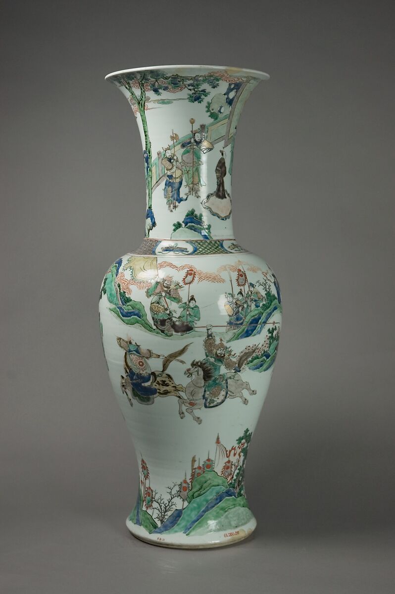 The figures on this vase were inspired by illustrations of historical characters in woodblock-printed plays and novels. Those publications became popular in the seventeenth century and influenced porcelain design and other decorative arts.