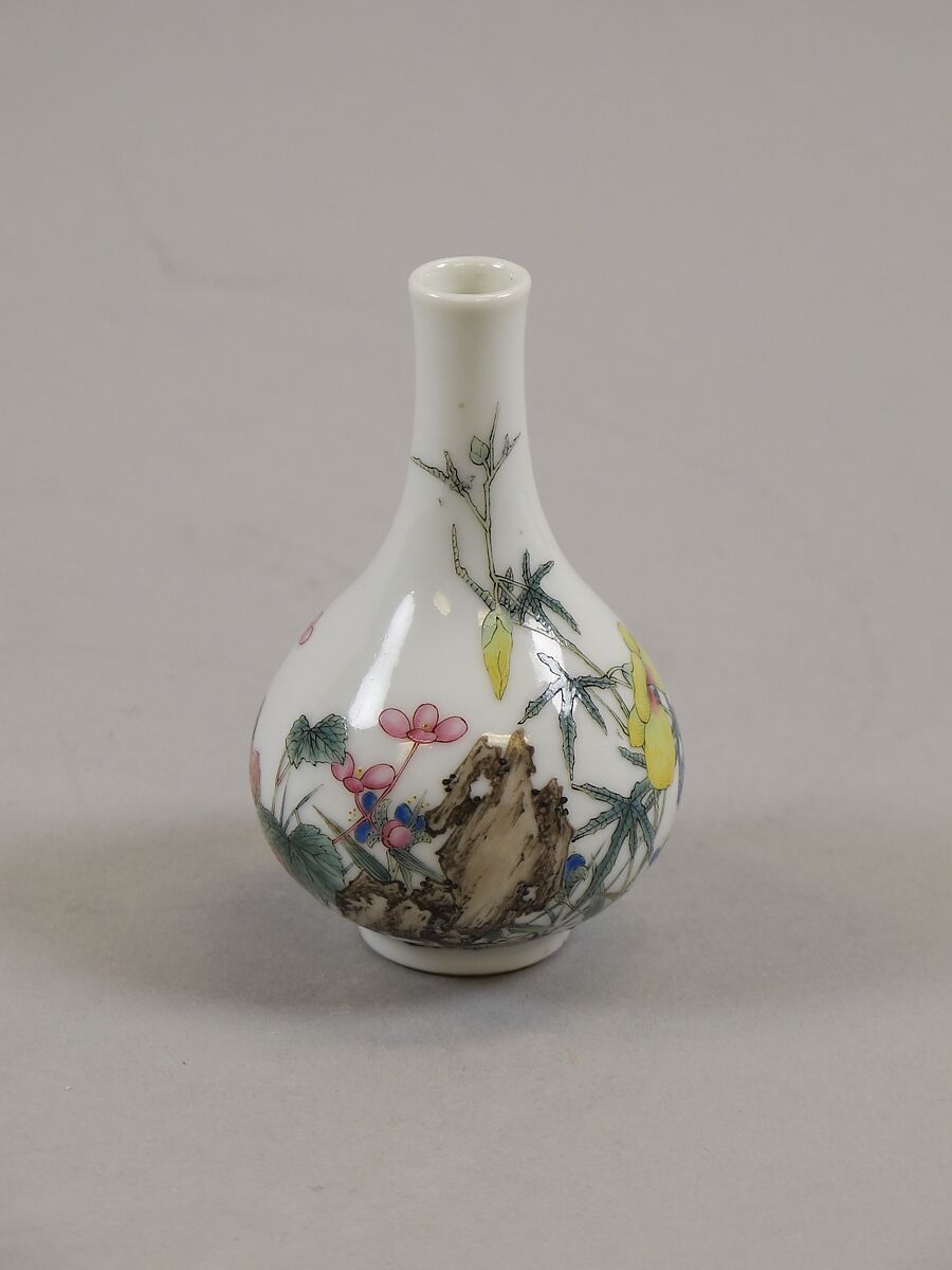 - Medium: Porcelain with polychrome enamels (in imitation of the so-called gu yue xuan type)