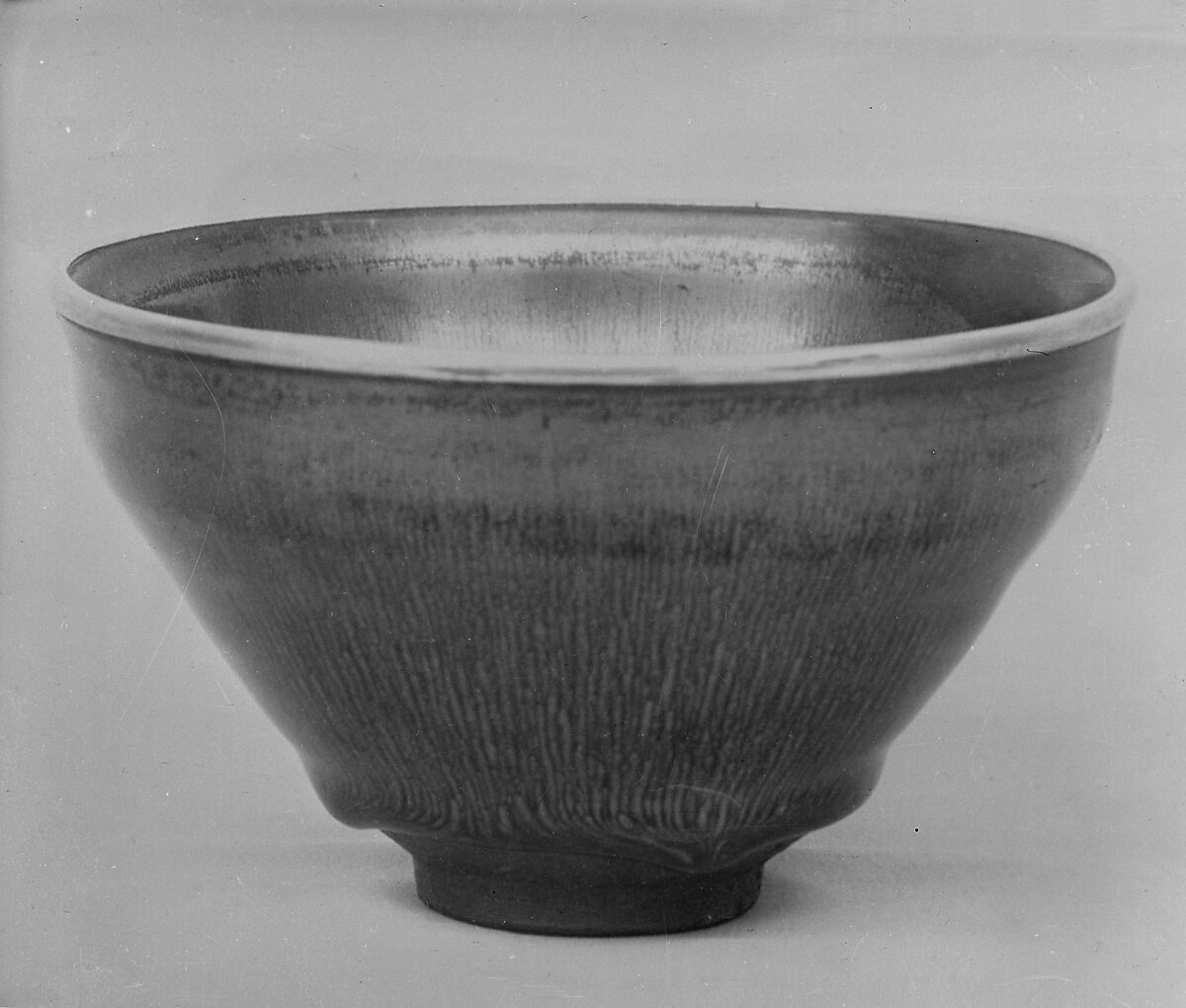 - Medium: Dark reddish ware with black glaze and gold band on mouth rim