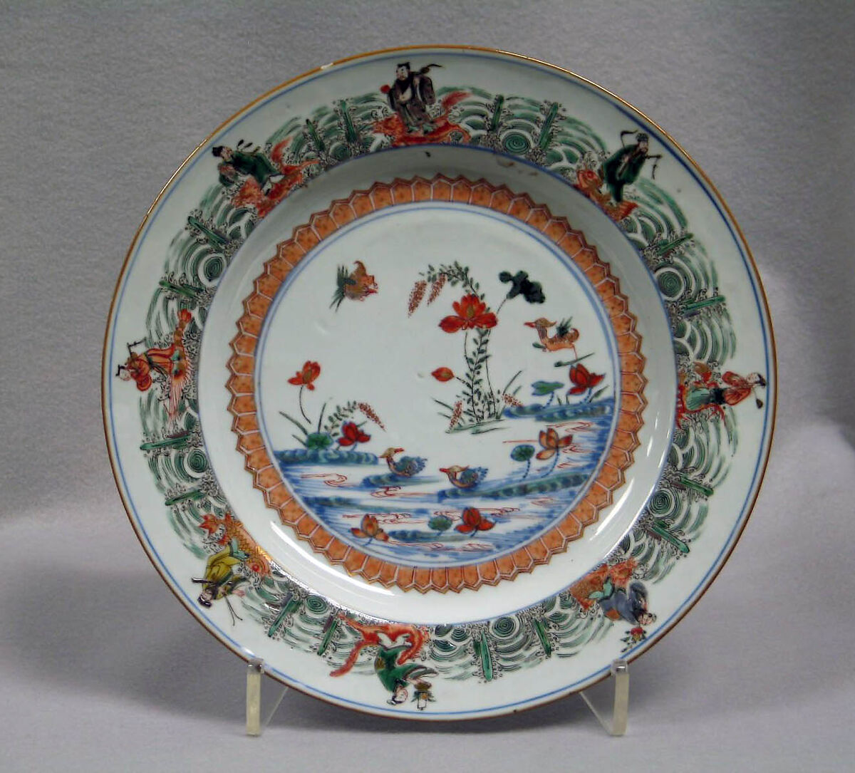 - Title: Plate with lotus pond and Daoist immortals