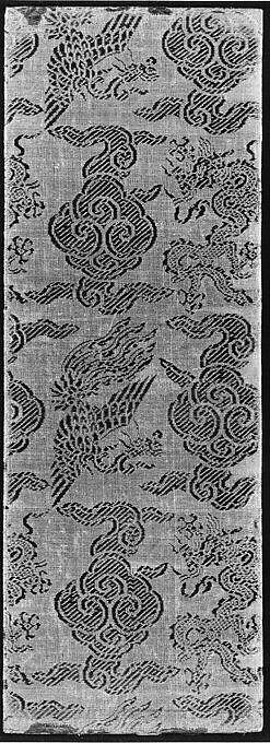 Luxury silk features prominently in covers of Buddhist sutras commissioned by the Ming court. Ornamental patterns on these textiles often reflect a standard design from the imperial workshop. Here, dragons, phoenixes, and auspicious clouds are rendered in the same style as those found on sixteenth-century imperial ceramics and lacquerware.