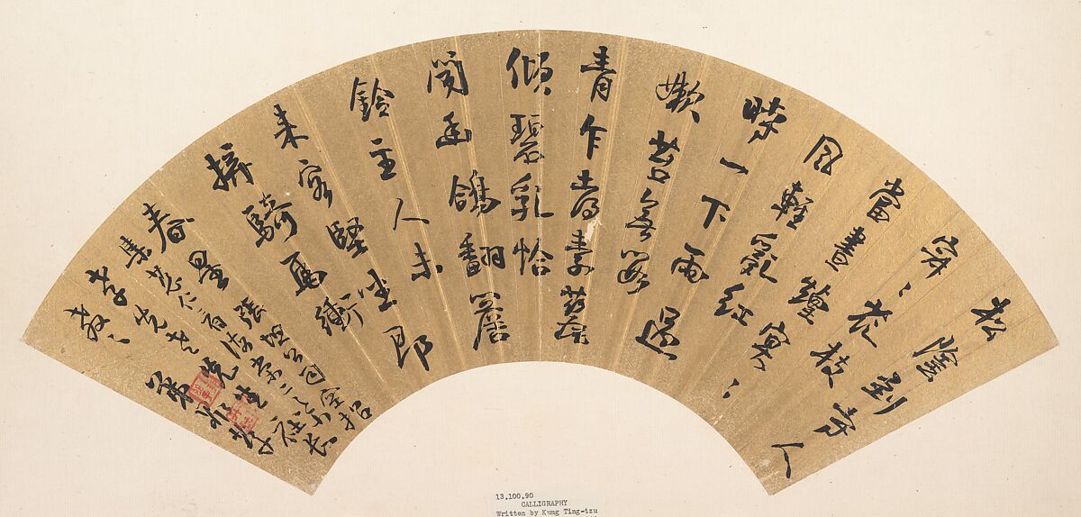 - Medium: Folding fan mounted as an album leaf; ink on gold paper