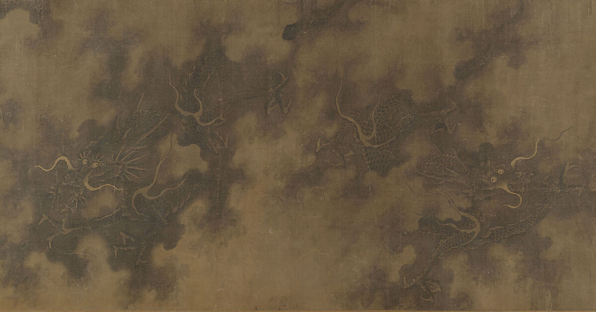 This painting follows the manner of the most celebrated dragon painter in Chinese history, the scholar-official and Daoist master Chen Rong. Chen famously avoided depicting the complete forms of his dragons, preferring to preserve their mystery by partially obscuring them in mists and clouds. In places, the artist of this work depicts a dragon in its entirety, one of the signs that it is a later painting in Chen’s manner. The inscription at the end is either a copy of an authentic Chen Rong or an outright fabrication.