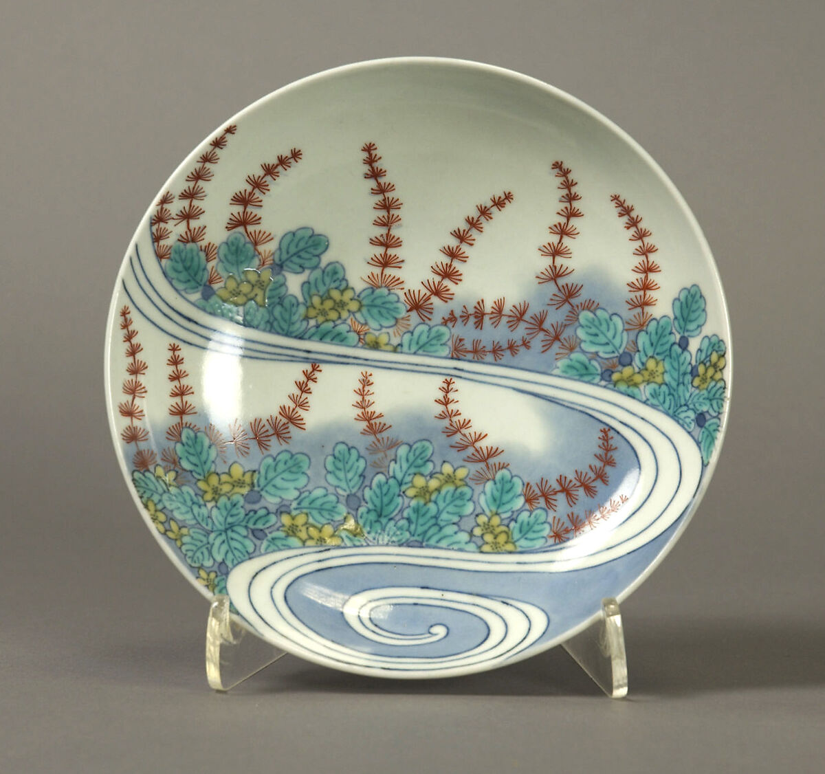 - Medium: Porcelain with underglaze blue and overglaze enamels (Hizen ware, Nabeshima type)