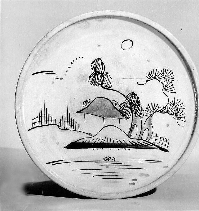 - Medium: Pottery; flat surface is painted with a sketchy design (Seto ware)