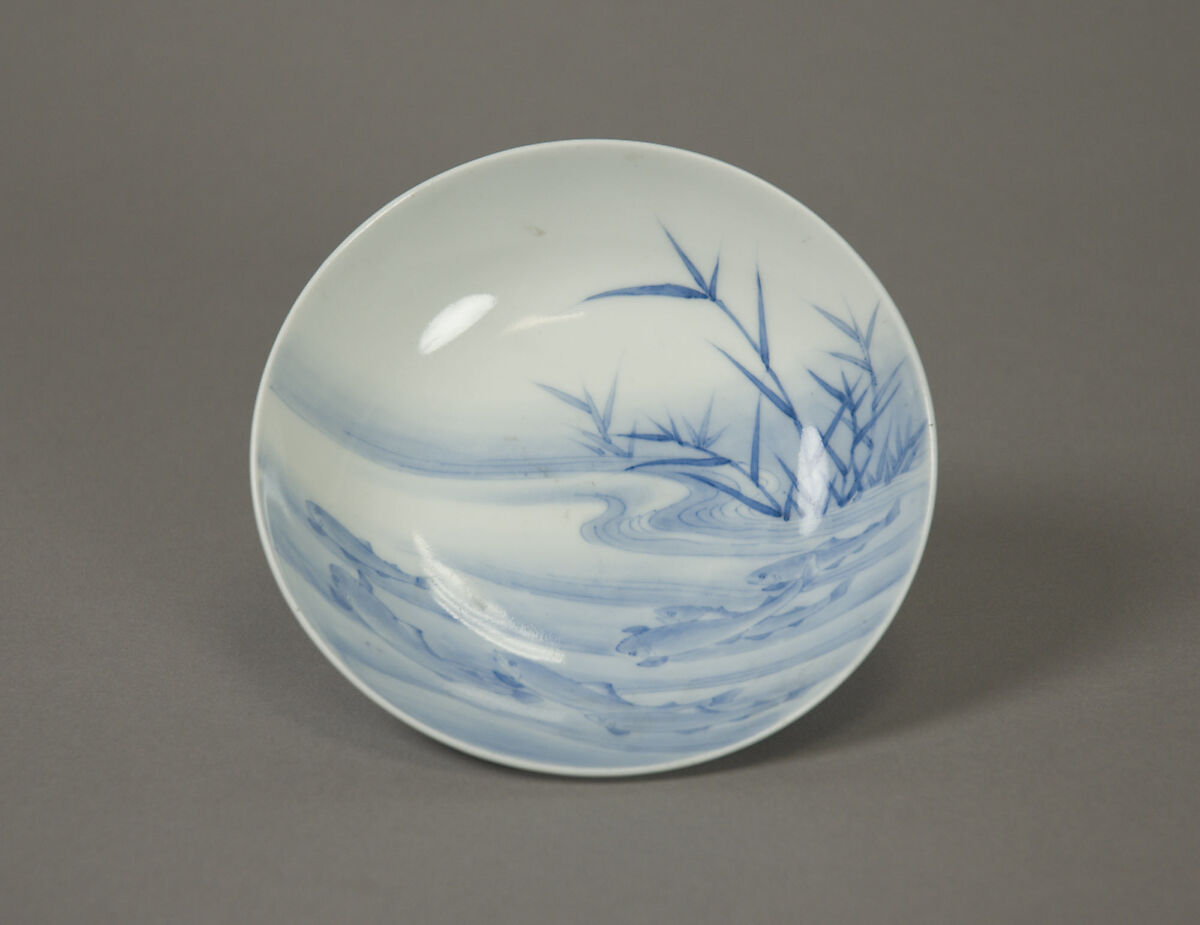 - Medium:White porcelain decorated with blue under the glaze; comb pattern round the high foot (Nabeshima ware)