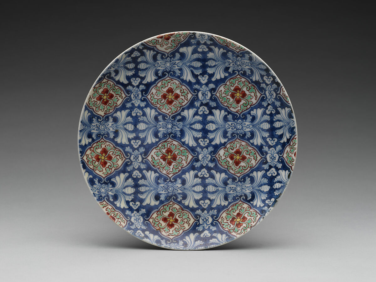 - Medium: Porcelain with underglaze blue and overglaze enamels (Hizen ware, Nabeshima type)