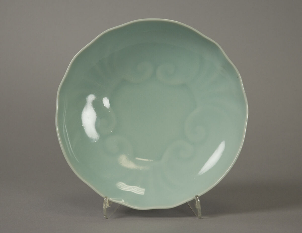 - Medium: Porcelain with molded floral relief and celadon glaze (Nabeshima ware)