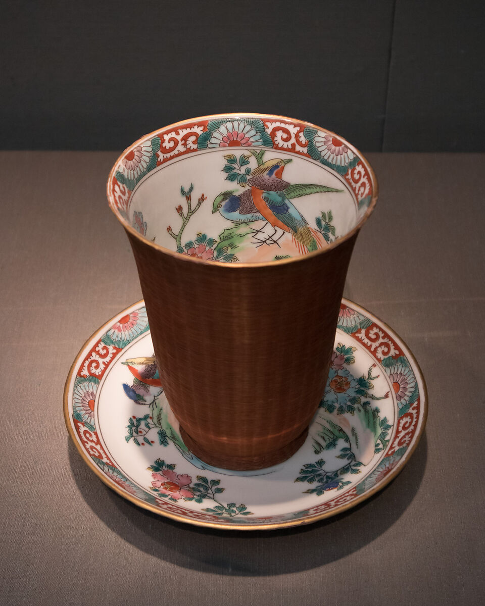 - Title: Cup with Bird-and-Flower Design and Basketry Exterior