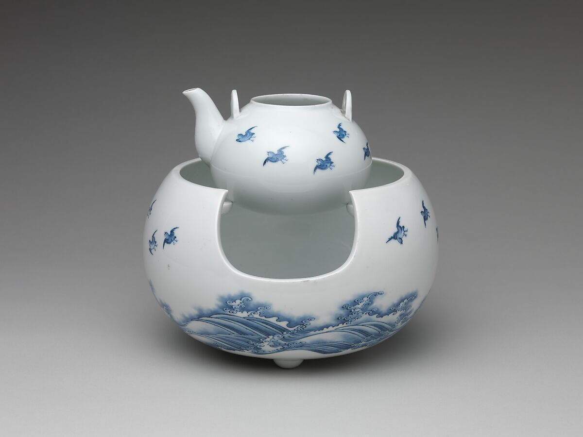 - Title: Teapot and Brazier with Design of Birds Flying over Waves