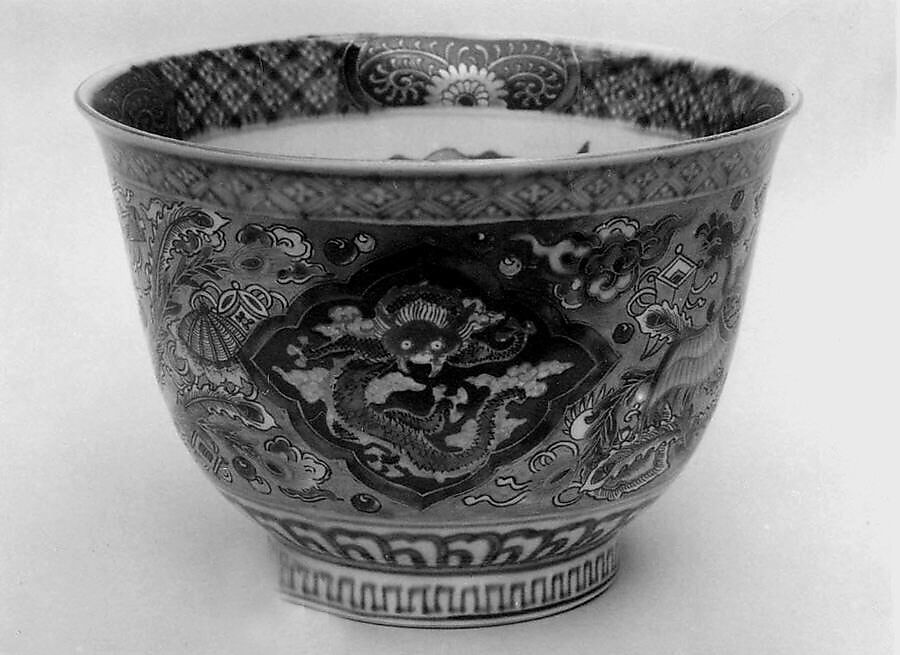 - Medium: Porcelain decorated in red-orange, blue, green and gilt (Arita ware, Imari style))