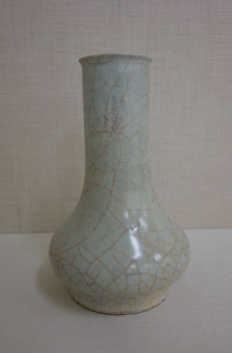 - Medium: Stoneware with crackled blue glaze (Guan ware)