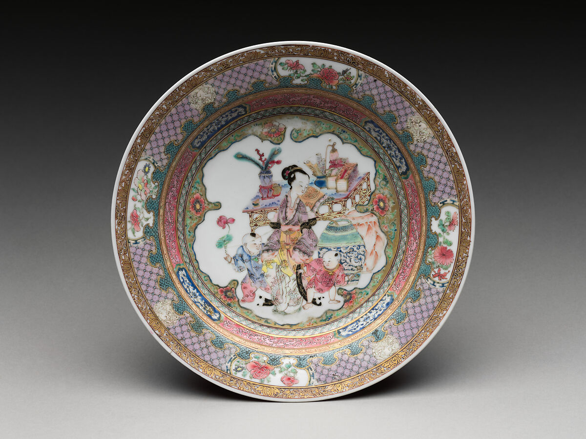 - Medium: Porcelain painted with overglaze polychrome enamels and gold (Jingdezhen ware)