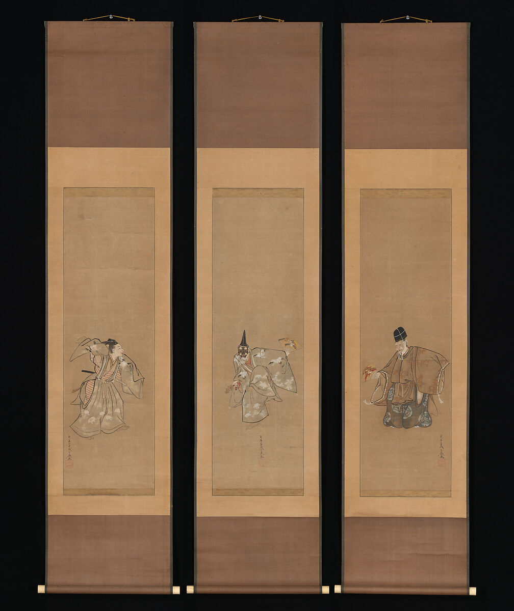 - Medium: Triptych of hanging scrolls; ink, color, and gold on paper