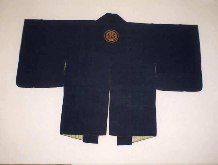 This costume is made from a blend of cotton and wool. Wool was expensive and not commonly worn in Japan before the Meiji period (1868–1912); however, it can be seen in both battle jackets (jinbaori) and firefighting garments, including capelike hoods, for
