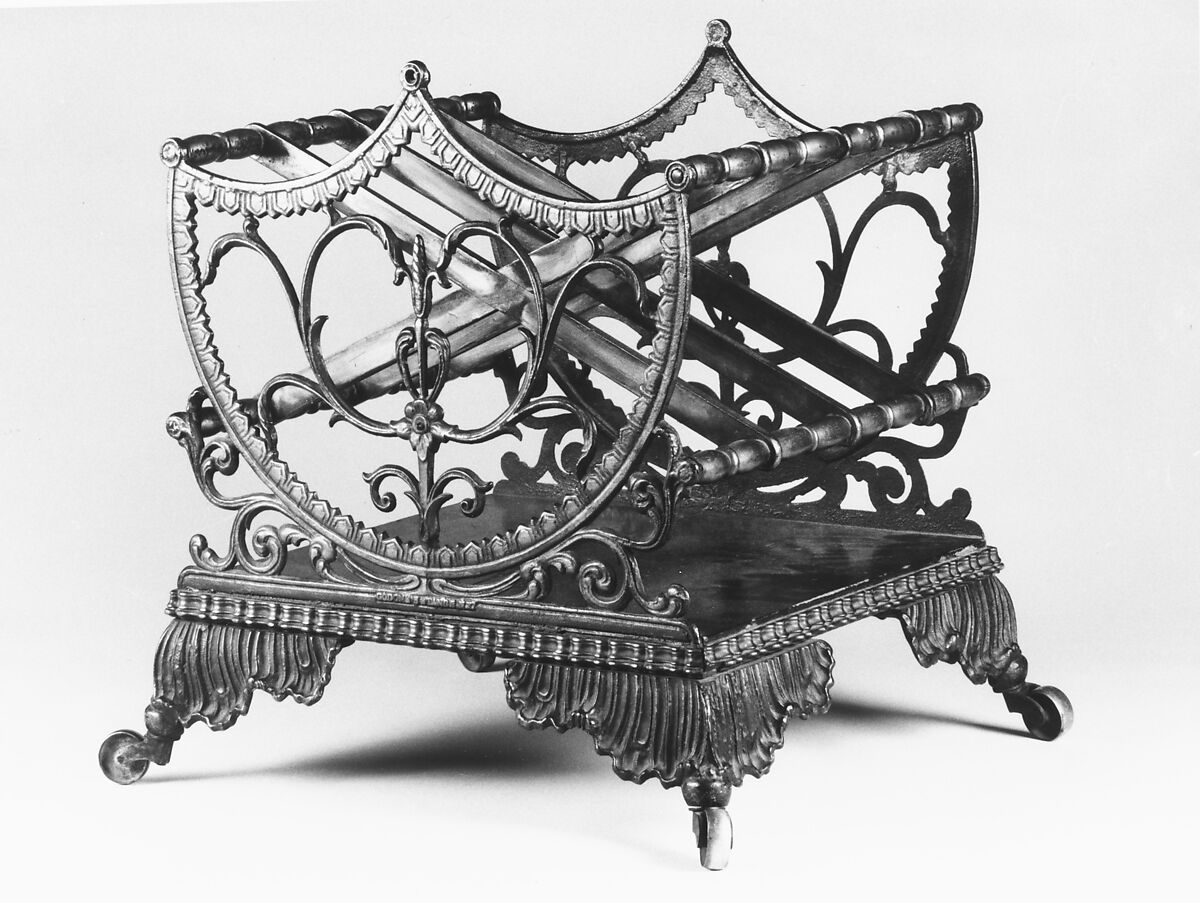 This cast iron music rack is a unique combination of Classical and Rococo motifs. The inscriptions refer to Gaspar Godone, a maker of musical instruments who listed in New York business directories between 1830 and 1870. He probably manufactured and sold the stand.
