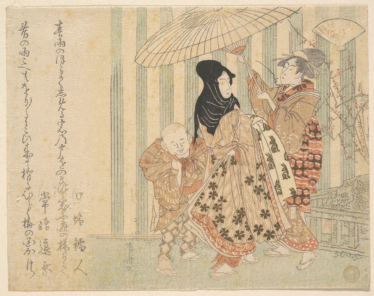 - Title: Courtesan with Attendants, Boy and Maid, in the Rain Under an Umbrella
