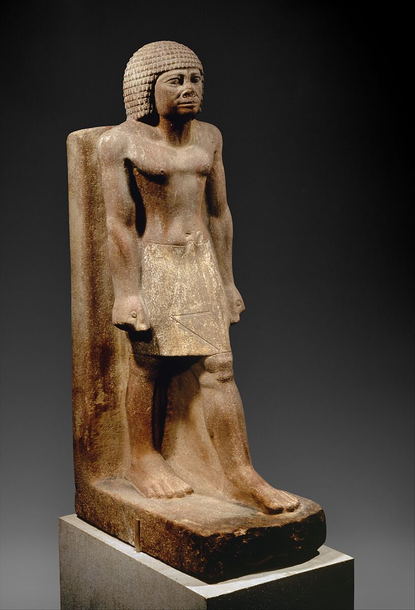 The statue has recently been identified as one probably from a tomb at the southern site of El Kab that may date from the early Fourth Dynasty. The style, which has no good parallels in Old Kingdom statues found at Saqqara and Giza, would seem to reflect a regional style.