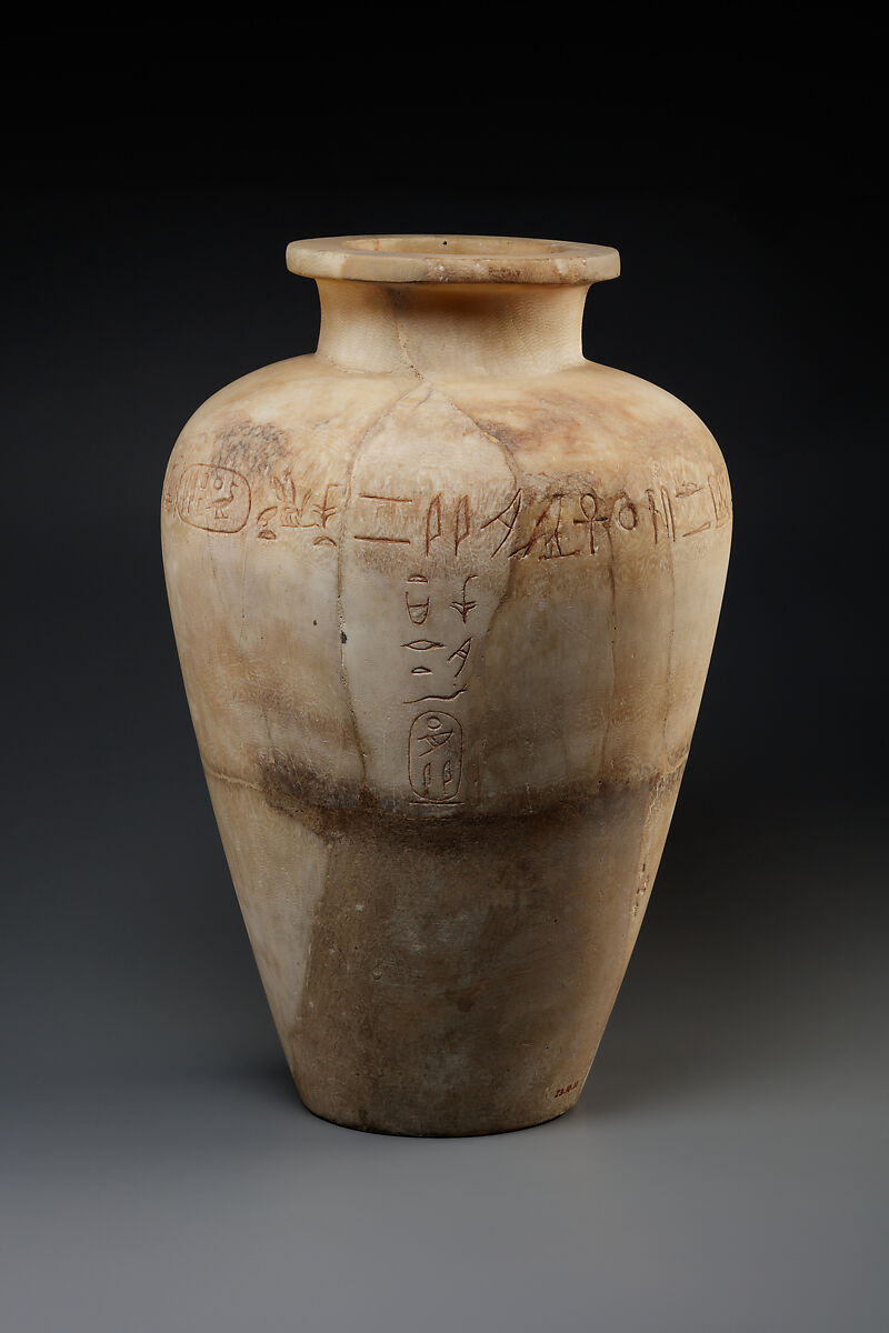 The inscription on this vase refers to the first hebsed (a royal renewal festival celebrated ideally at 30 years of reign) of Pepi I. The name of a queen (Mery-re, perhaps short for Ankhnesmeryre, the name of two known wives) has been added secondarily below.