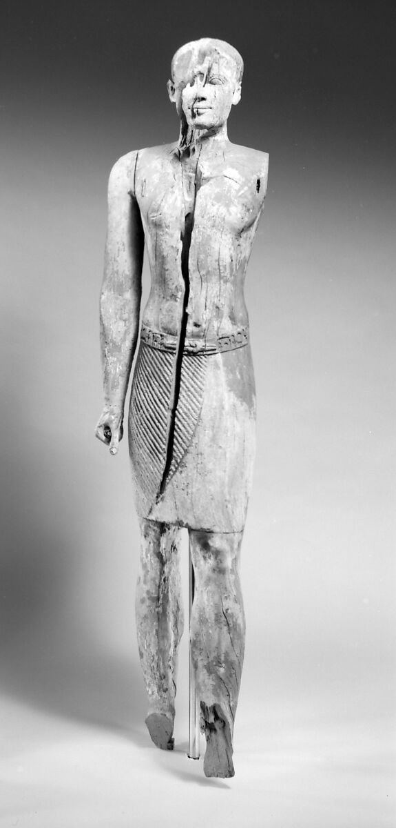 Although archaeologists differ in their evaluation of the date of the tomb from which this statue originates, features of the decoration of the mastaba and of other stone statuary in the tomb indicate a possible date in mid-Dynasty 4 for this wooden statue and another in Cairo of Kaipunesut. The early date suits the semicircular eyes and elongated lips of the face.