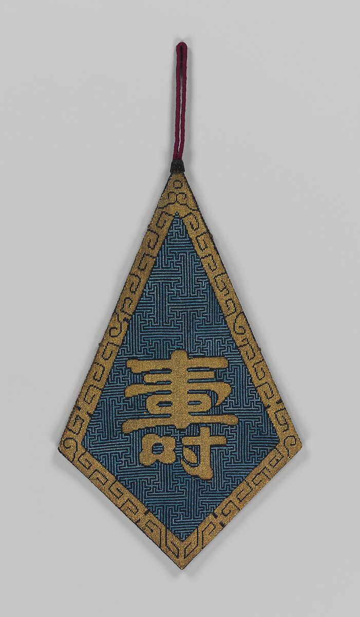 This case is decorated with the character shou, meaning longevity, on a fretwork ground that incorporates the swastika, or wan, signifying ten thousand years.