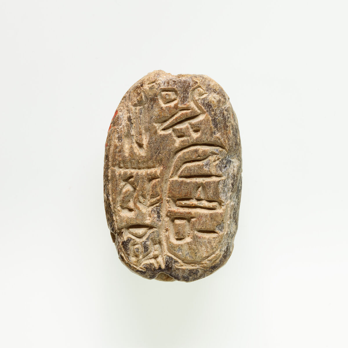 This scarab is inscribed with the royal title and nomen of pharaoh Sebekhotep IV (Dynasty 13, ca. 1731-1719 B.C.), and specifies his genealogy by mentioning his mother Kemi.