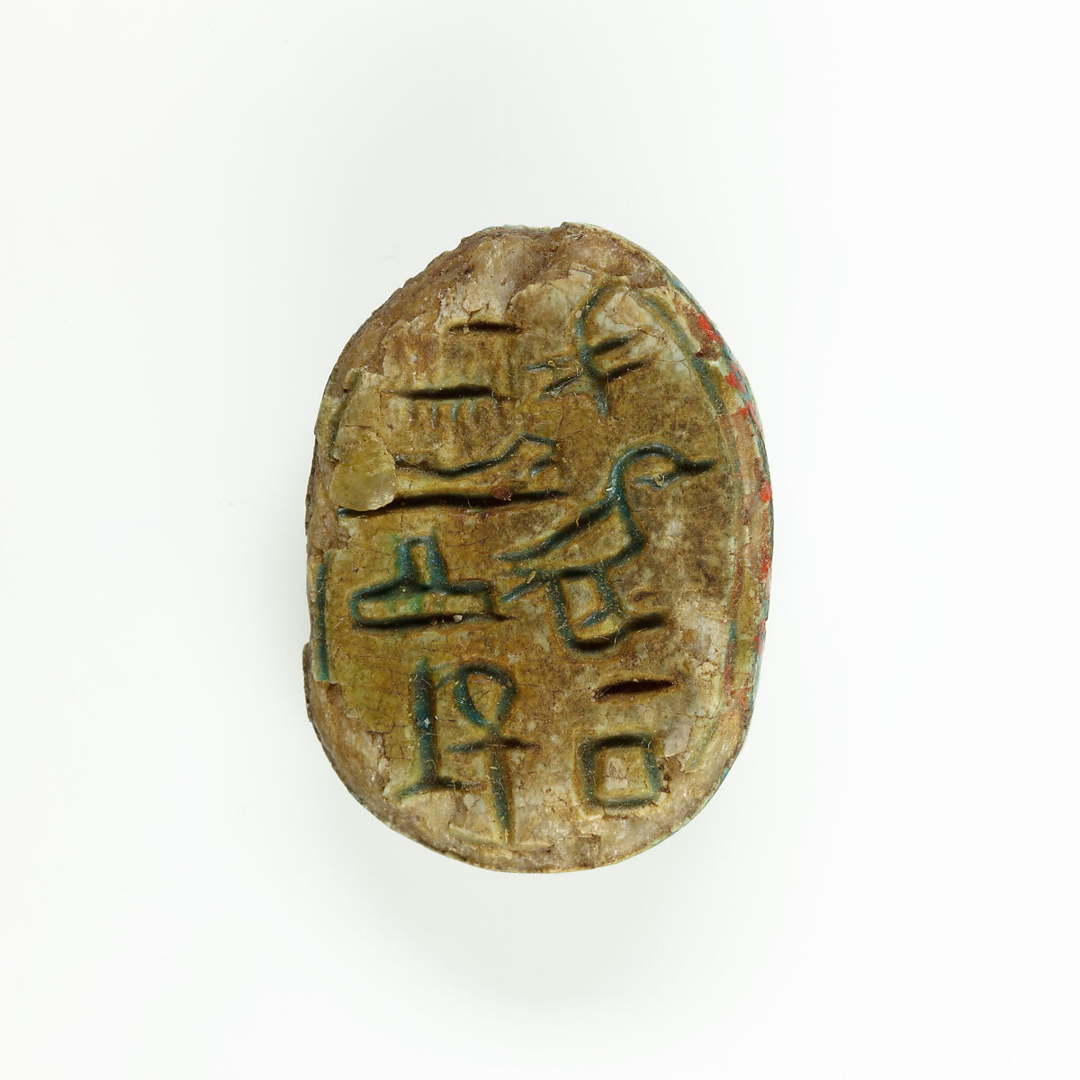 This scarab is inscribed with the royal title ‘king’s son’ followed by the prince’s name, Sebekhotep. Added to the inscription is a formula, which wishes members of the royal family life and prosperity. The shape and decorations of the scarab are characteristic of Dynasty 13 scarabs.