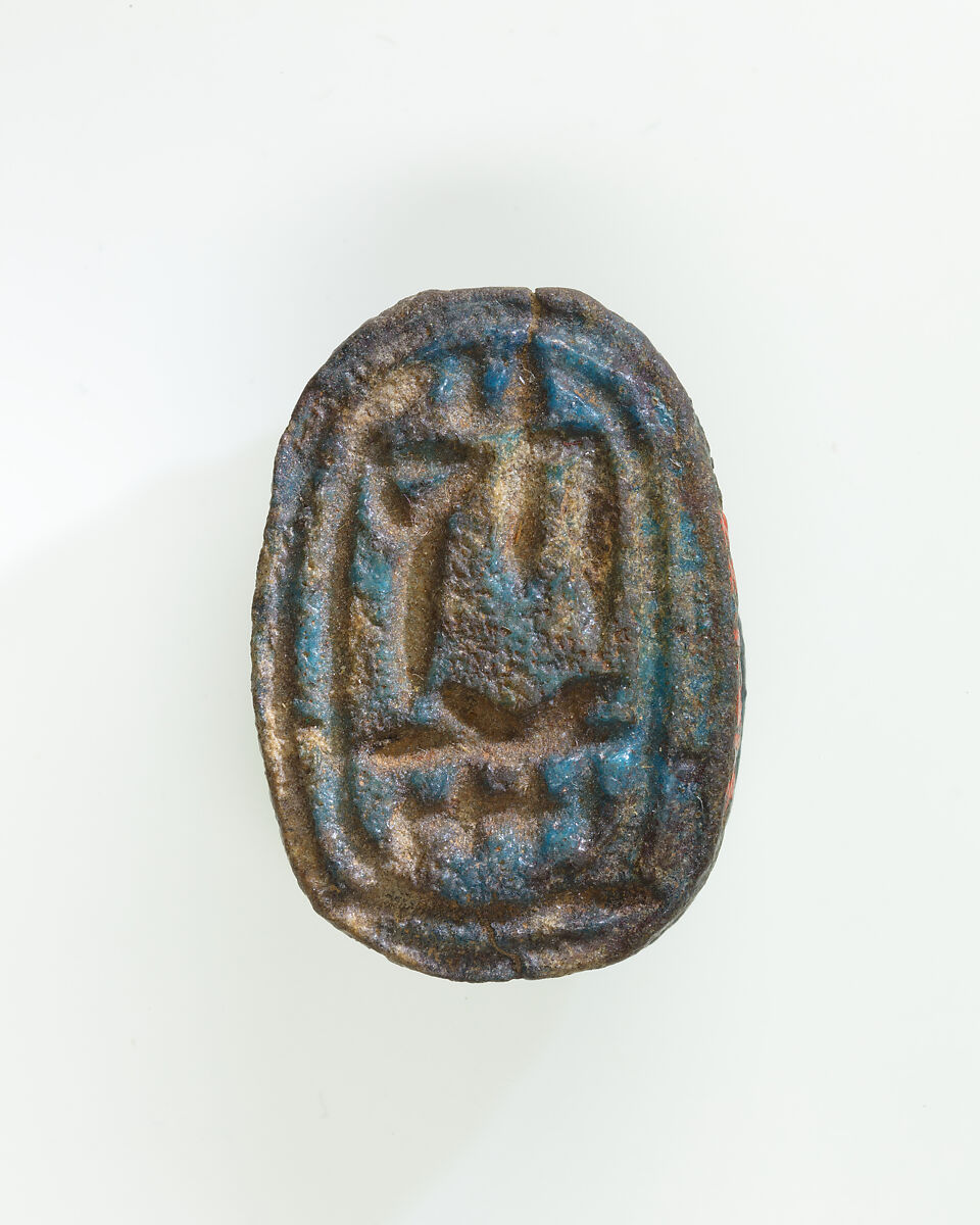 This scarab is inscribed with a large cartouche containing the royal name Sewadjenre, which is generally associated with the Theban king Nebirierau I (Second Intermediate Period, ca. 1627-1601 B.C.).