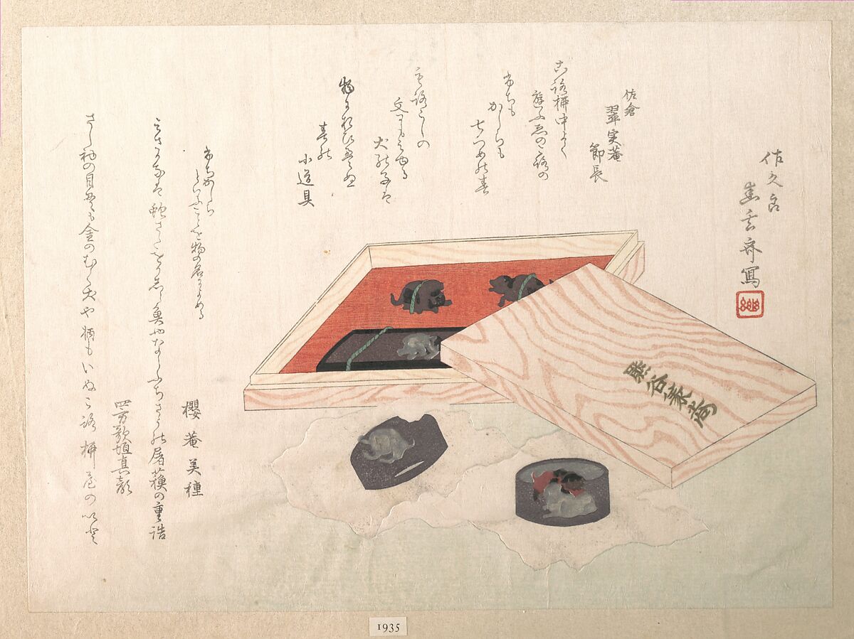 - Medium: Woodblock print (surimono); ink and color on paper
