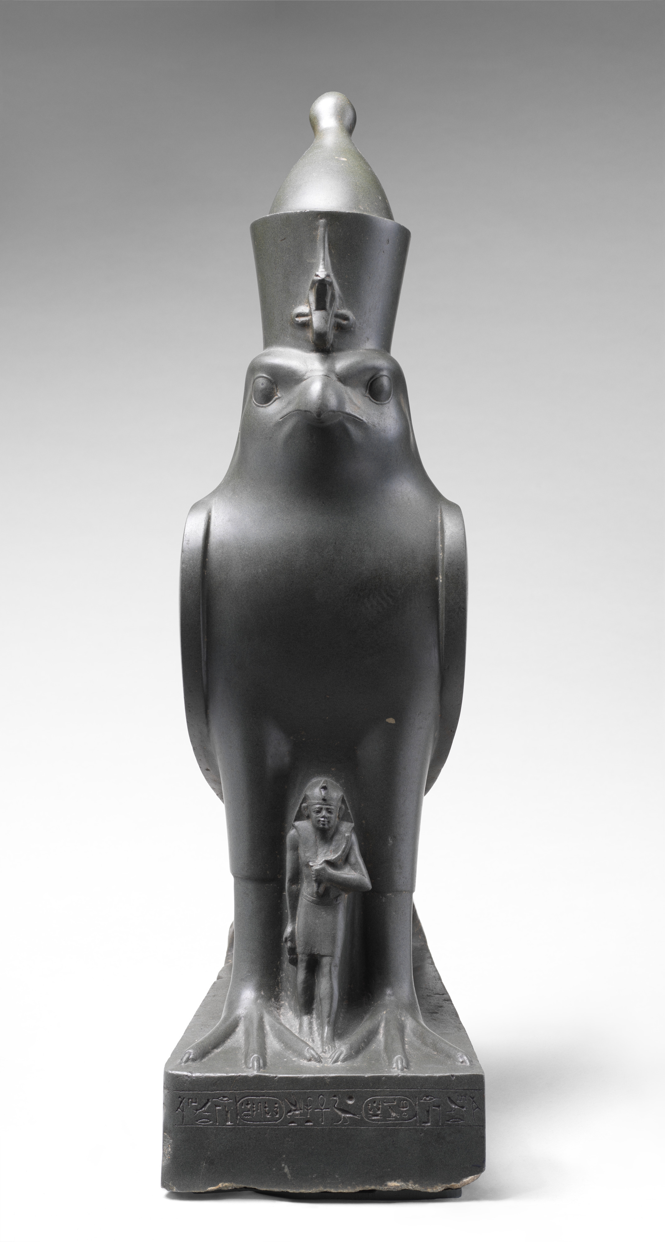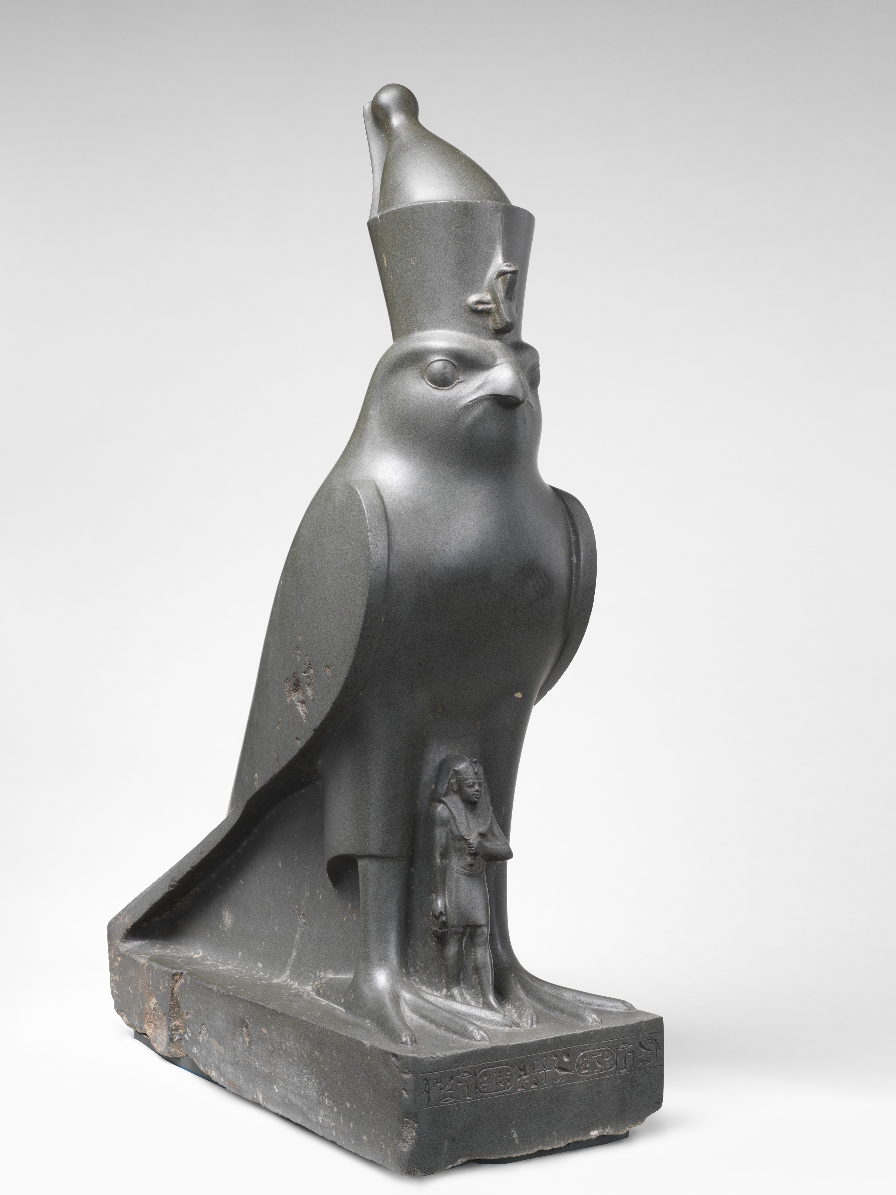 The pharaoh Nectanebo II often invoked a very close connection–even a merging–between himself and the falcon god of kingship, Horus. In fact, Nectanebo II was the focus of a cult in which he was referred to as "Nectanebo-the-Falcon," which could indeed be what is represented by this striking conjunction of a powerful falcon and the monarch. This idea seems to be supported by the fact that Horus is not named on the base, only Nectanebo and the god Osiris-Mnevis, at whose sanctuary in Heliopolis the statue may have been erected.