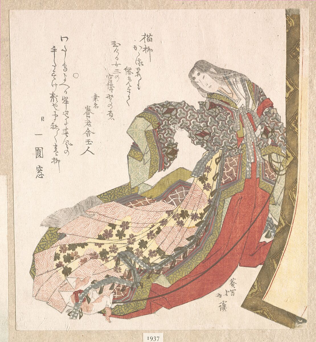 - Medium:Woodblock print (surimono); ink and color on paper