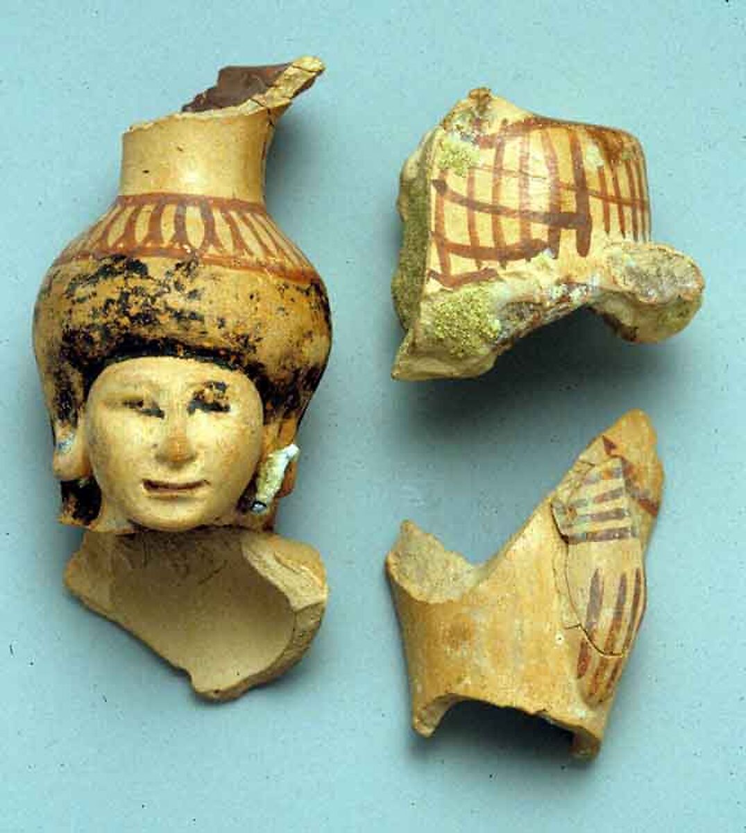 - Title:Fragments of a vase in the form of a woman holding a basket